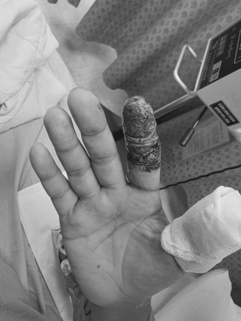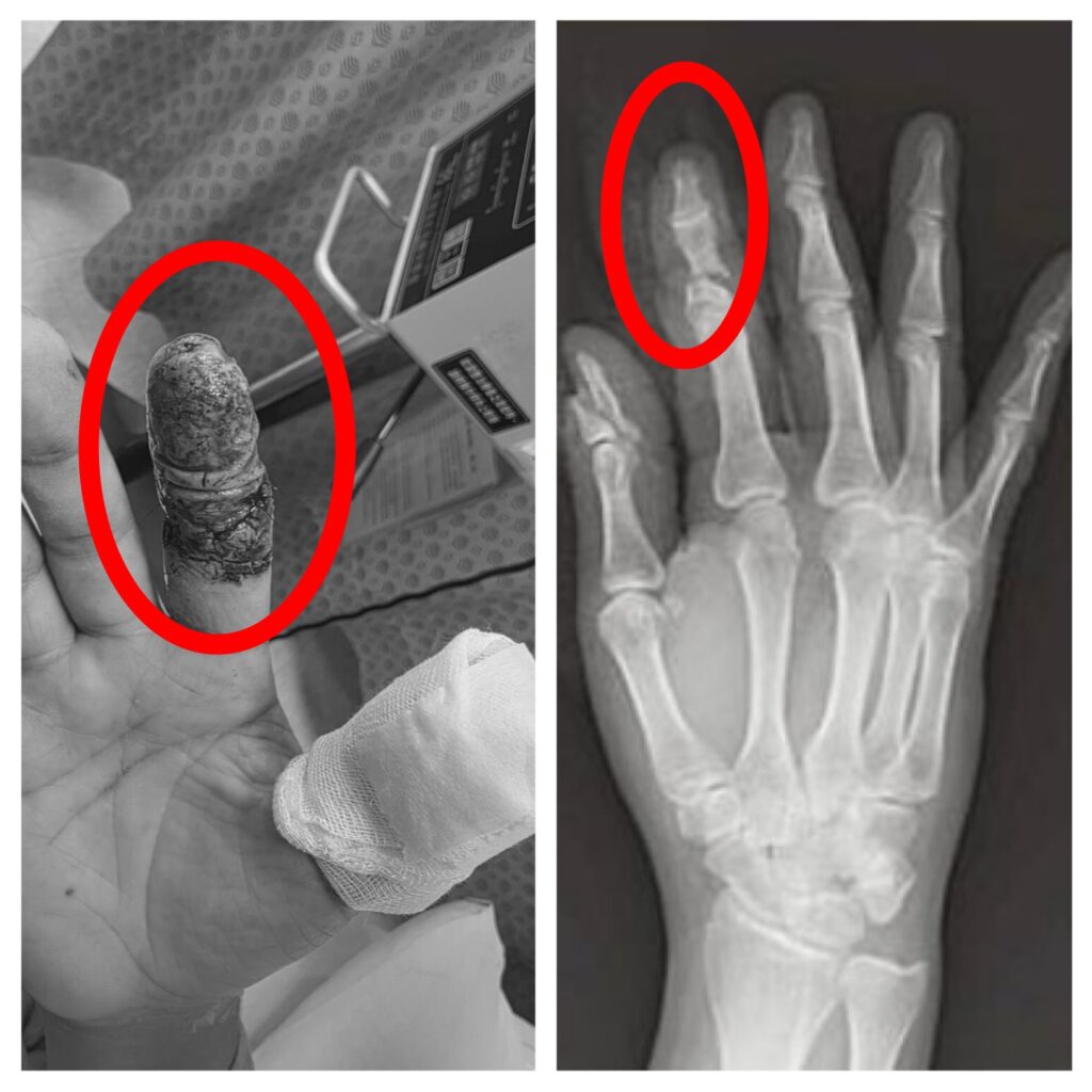 〔記者孫義方台中報導〕台中市豐原四十五歲林姓男子,操作大型無人機時發生意外,高速旋轉的螺旋槳瞬間擊中右手,食指幾乎完全斷離,僅剩少量皮膚相連,傷勢嚴重,經緊急送往衛生福利部豐原醫院救治,外科醫師陳明澤迅速評估屬重大手指創傷,若血流未恢復恐須截指,立即進行清創與重建手術,透過顯微技術接合受損血管與組織,成功建立循環,為後續組織存活爭取關鍵時間。