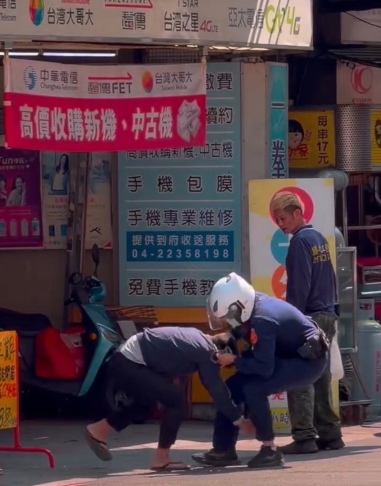 落跑兩年的越南移工遇警想呼悠繼續逃跑,警噴辣椒水民眾包圍當街抓人。(記者孫義方攝)