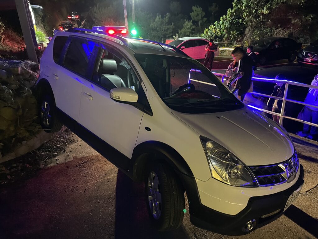 這起意外發生在七日晚間九時許,這名施姓男子開車載著女友,前往霧峰萊園路的這處夜景泡腳餐廳,在園區內一處彎道上去後想停車,發現都滿了無法停,想倒車開下來,結果倒車不慎,未注意到現場有高低落差,造成左後輪懸空,施男發現車子不穩想下車查看,不料才剛下車,車子就失去平衡翻覆並壓傷施男,當時女友在車上雖無恙,但目睹男友被壓傷嚇壞淚崩。