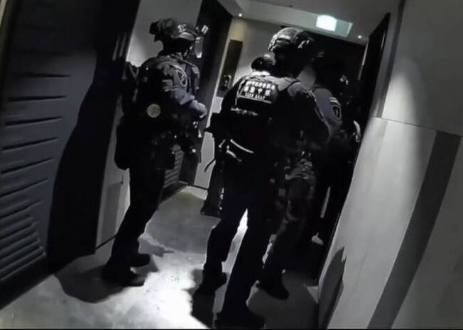 警方會同特警破門攻堅。(記者孫義方攝)
