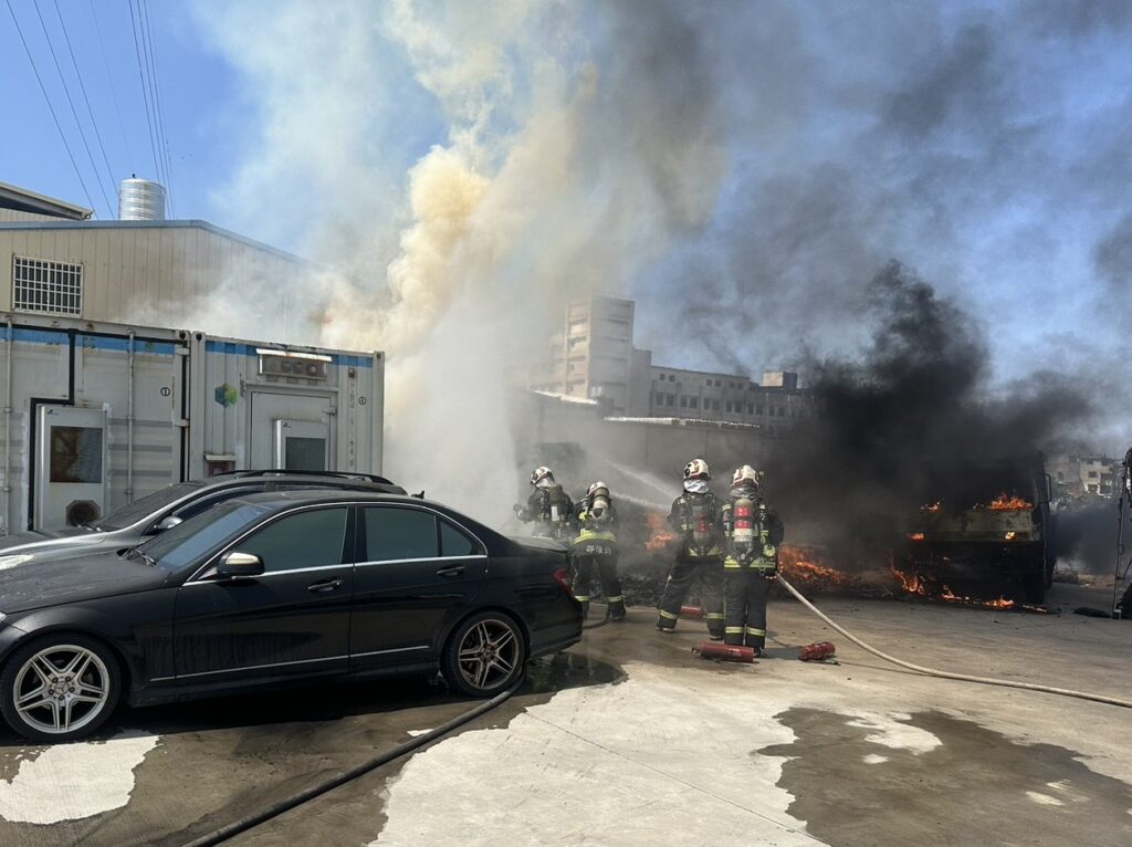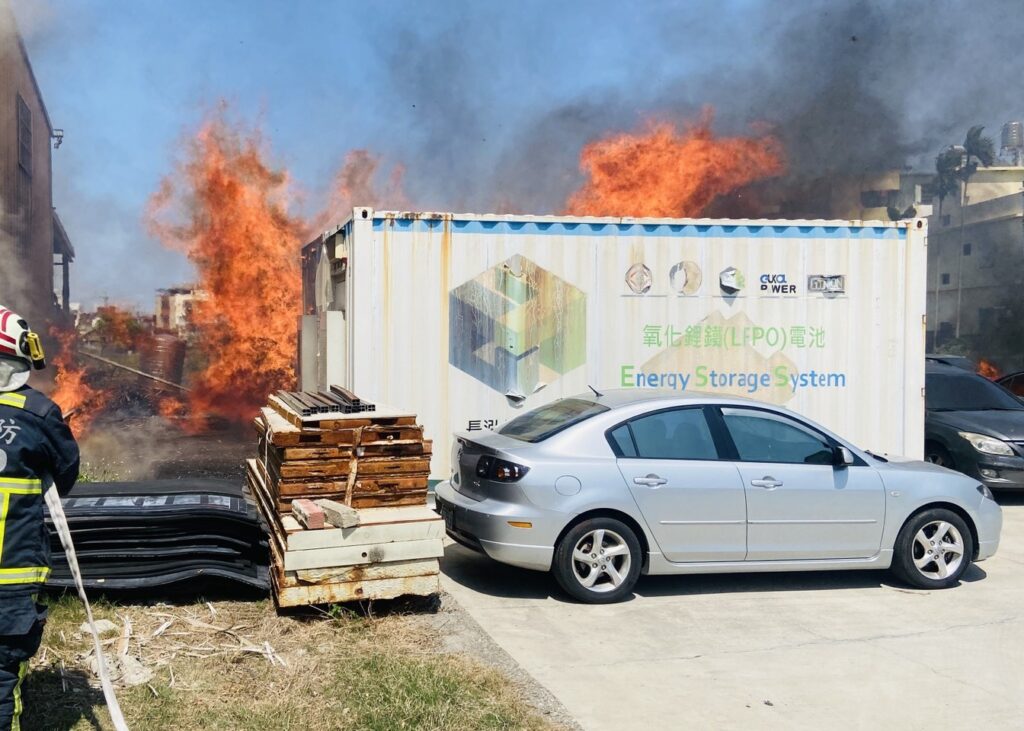 中午一時十四分火勢撲滅,現場為停車場內木棧板延燒到儲能貨櫃屋內些微雜物,貨櫃屋內未堆放危險物品、為放置雜物,一輛小貨車全毀、二輛轎車半毀、車輛行李箱受燒,燃燒面積約五十平方公尺、無人員受傷,確切起火原因消防局火調人員鑑定調查中。