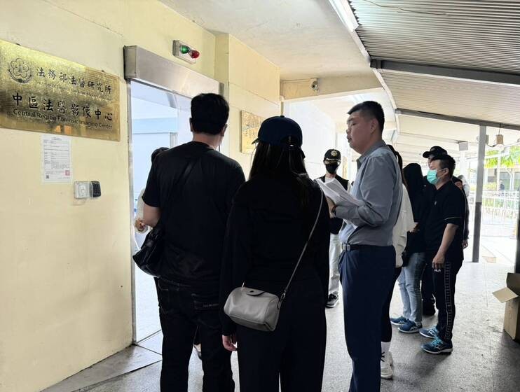 檢方十九日下午到崇德殯儀館相驗,女方家屬怒批軟爛男死者是「畜牲」。(記者孫義方攝)