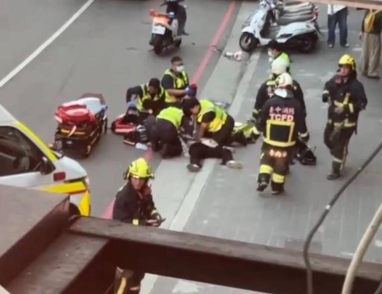 巴女倒臥街頭救護人員全力搶救。(記者孫義方攝)