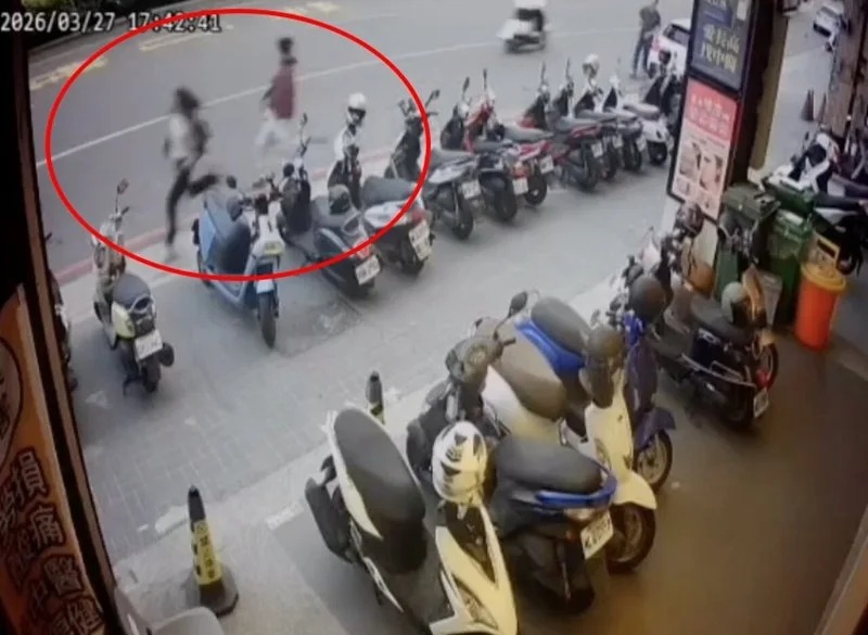 陳男抽出預藏的兩把刀猛砍,巴女驚慌逃跑被監視器拍下。(記者孫義方攝)
