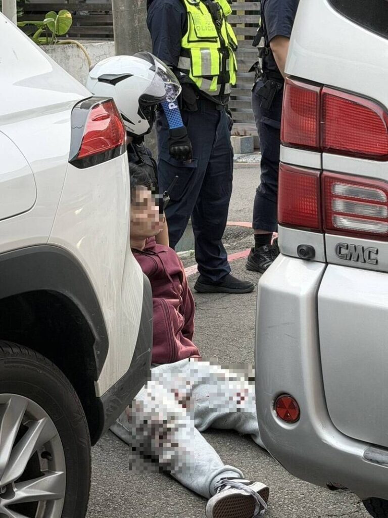 陳男困在死巷中就逮,身上衣褲沾血。(記者孫義方攝)