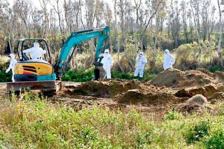 台中地檢署查出,雲男等四人因場內雞隻死亡數量龐大,自今年一月十日起,先於豐康畜牧場內掩埋處理,再由顏男提供其所有位於苗栗縣後龍鎮外埔段土地供非法回填,並將部分雞屍棄置於苗栗縣後龍鎮王爺宮大排水溝出海口處,總計非法清除及處理斃死雞隻約二千三百五十九隻。