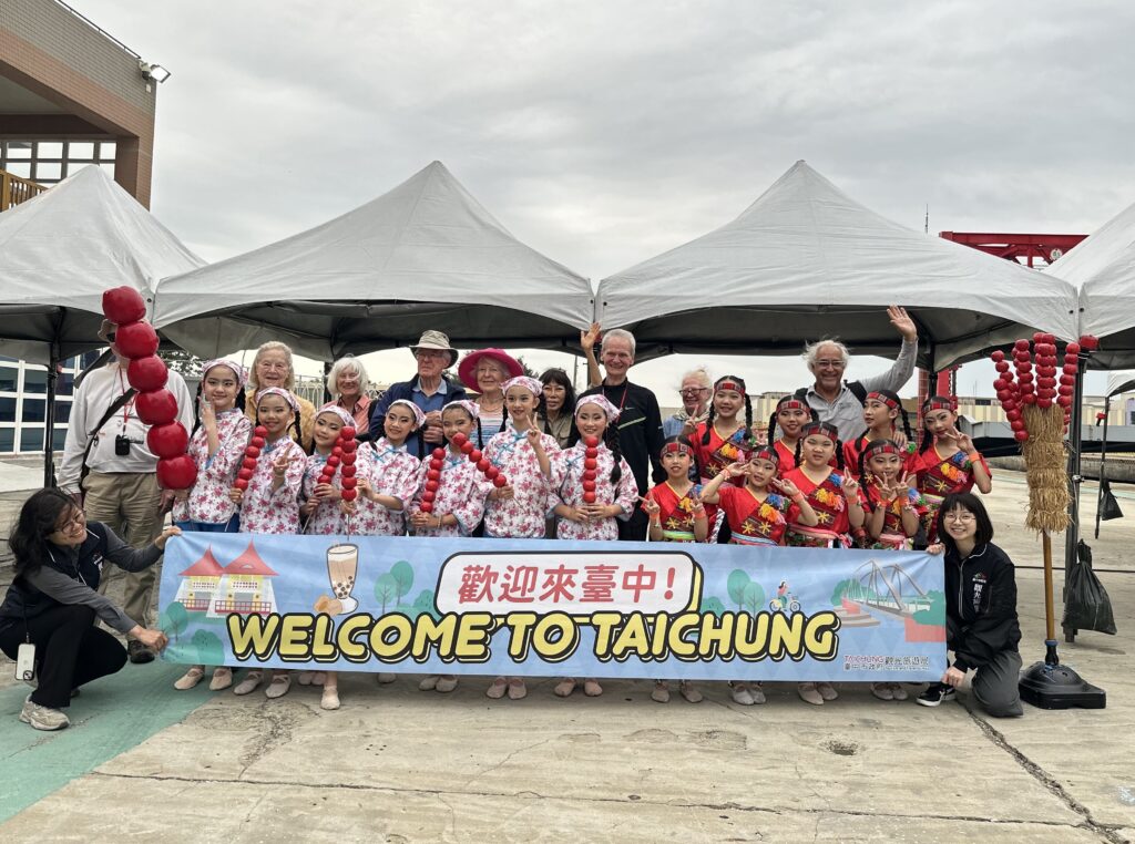 〔記者孫義方台中報導〕疫情後七年來第一艘郵輪入港囉!國際郵輪「島嶼天空(ISLAND SKY)」七日首航台中港,帶來八十四位國際旅客,台中港務分公司為表示歡迎,特別安排拖船噴水迎賓儀式熱情迎接,台中市政府特別在碼頭面安排「臺中國際踩舞嘉年華」的舞團的舞蹈表演,讓旅客一下船就感受到中臺灣的熱情與魅力。要參選台中市長的民進黨立委何欣純及國民黨立法院副院長江啟臣先後到場迎接,並致贈旅客及船長紀念品,也分別提出對台中港發展的看法。