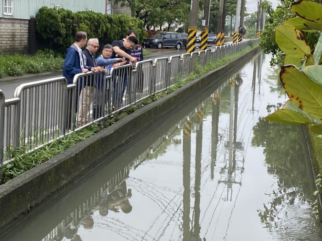 台中市神岡區文化景觀「浮圳」因水面幾乎與路面等高,豪雨常造成鄰近民宅、工廠淹水,立委楊瓊瓔八日邀集中央與地方多個單位現勘。(記者孫義方攝)
