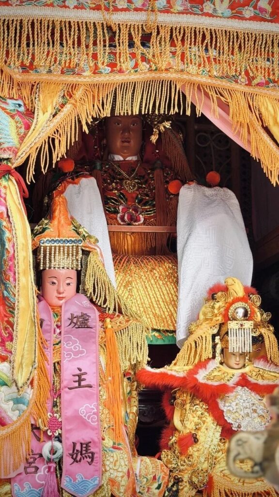 白沙屯媽祖和山邊媽祖與爐祖媽中午暫時停駕大甲鎮瀾宮。(記者孫義方攝)