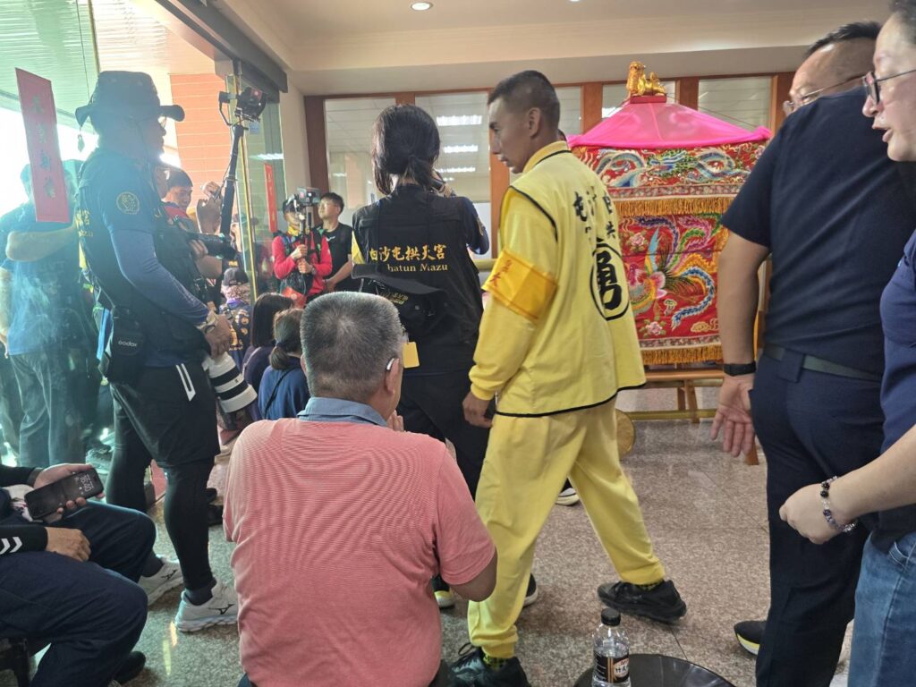 清水警分局長鄭鴻文率領員警接駕白沙屯粉紅超跑,清水警分局共動員警力及民力約一百十五人次,依鑾轎行進路線、人潮密集程度及車流狀況,機動調整交通管制措施,採取彈性車道管制,全力確保道路順暢與民眾安全。