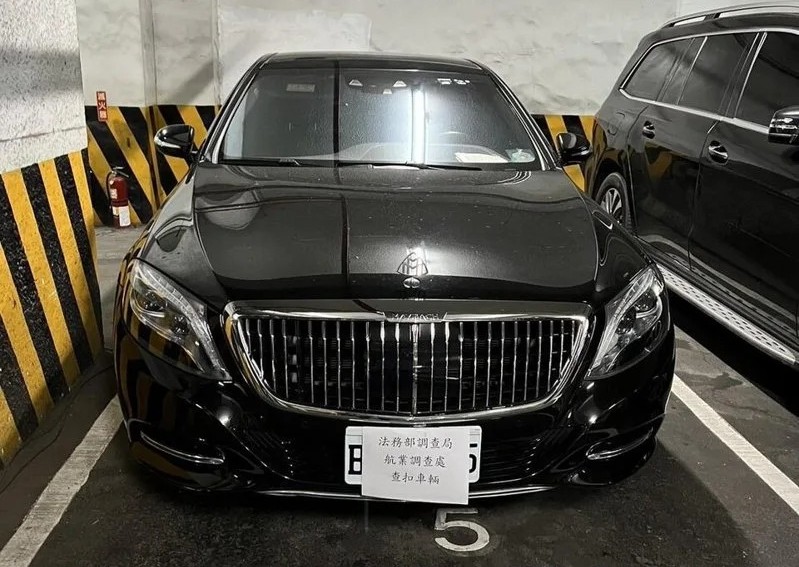 專案人員查扣萬里開發公司董事長洪岳鵬名下的邁巴赫豪車。(記者孫義方攝)